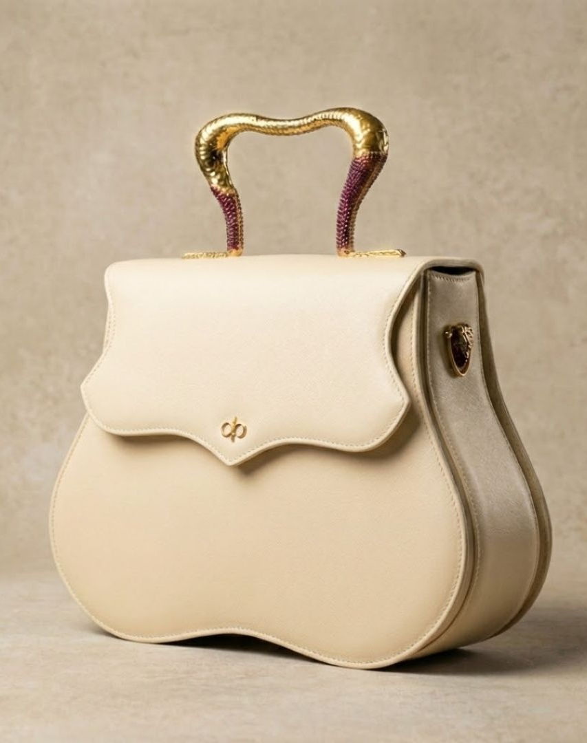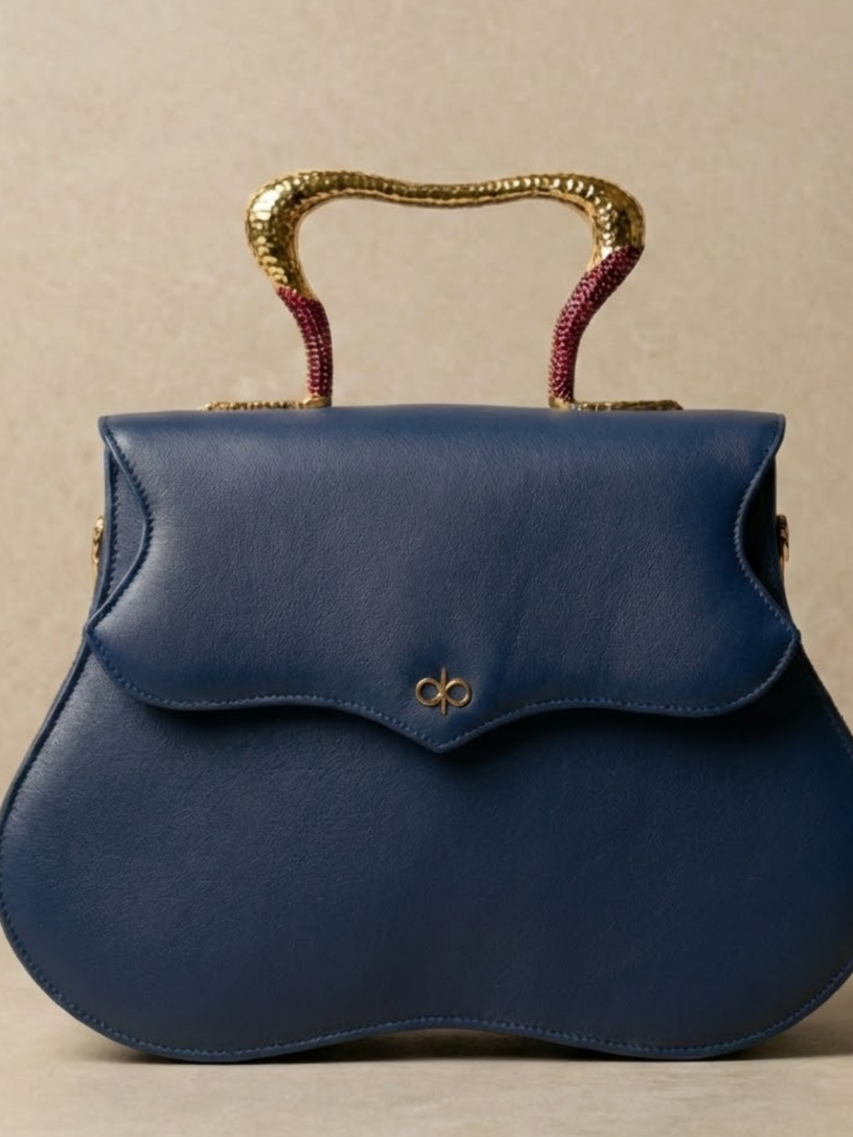 Maya is a top-handle statement bag with an accordion-style construction that expands gracefully while maintaining its structured elegance. Designed for seamless access and organisation, she is crafted for moments that demand attention, from red carpets to high-powered meetings.