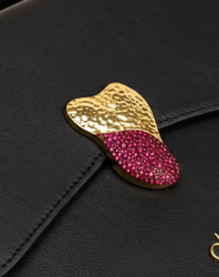 Brass clasp shaped like a tongue caught in motion, mirroring fire in its flickering form.